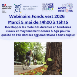 Wébinaires Fonds vert 2026 : Qualité de l’air dans les agglomérations et Mobilités durables en territoires ruraux
